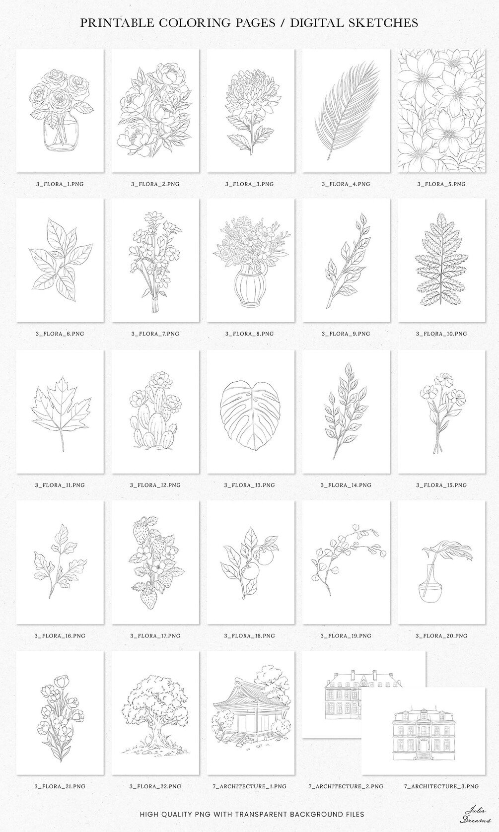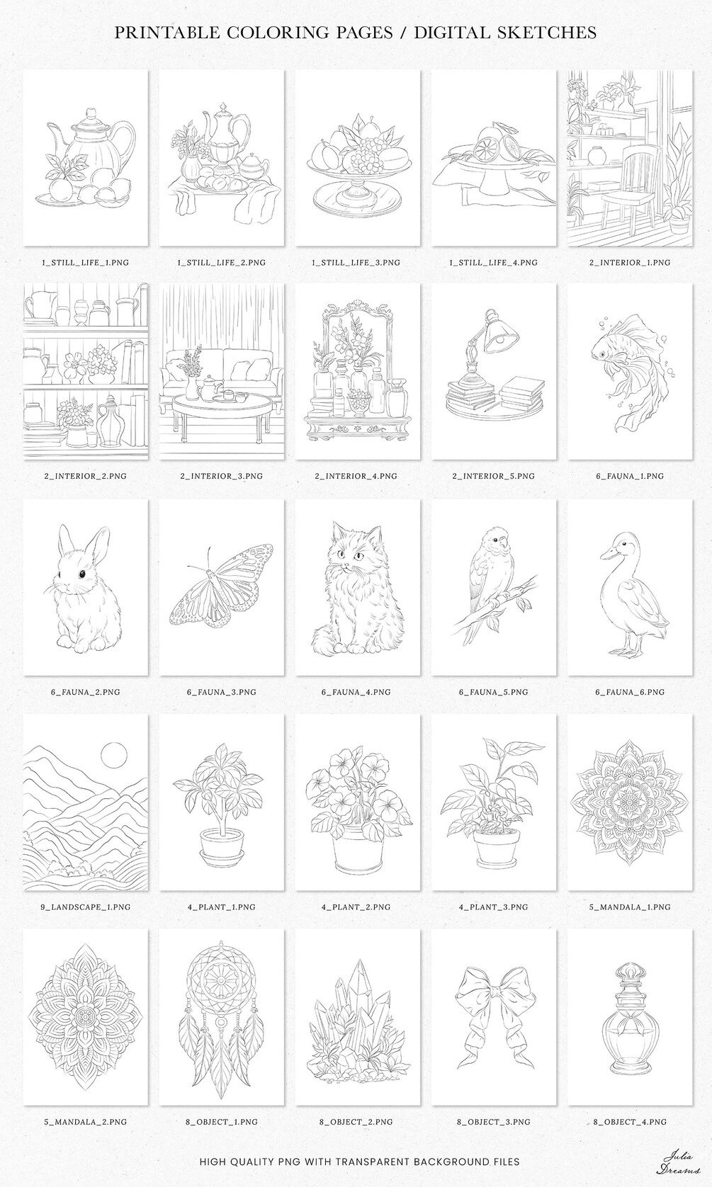 • 50 printable coloring pages / digital sketches - png with transparent background;