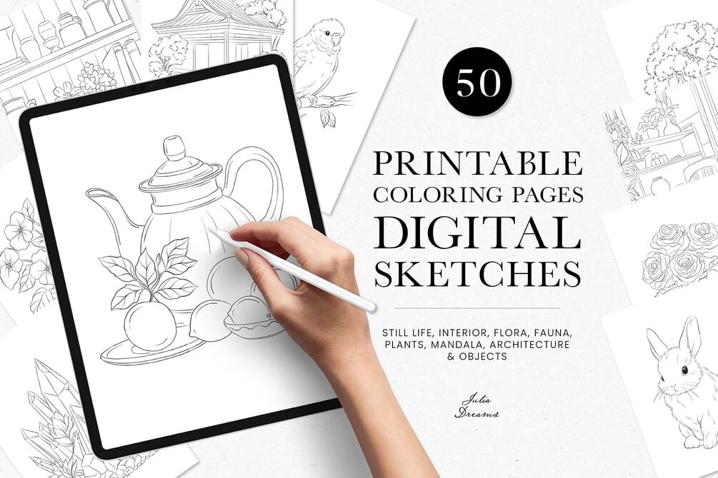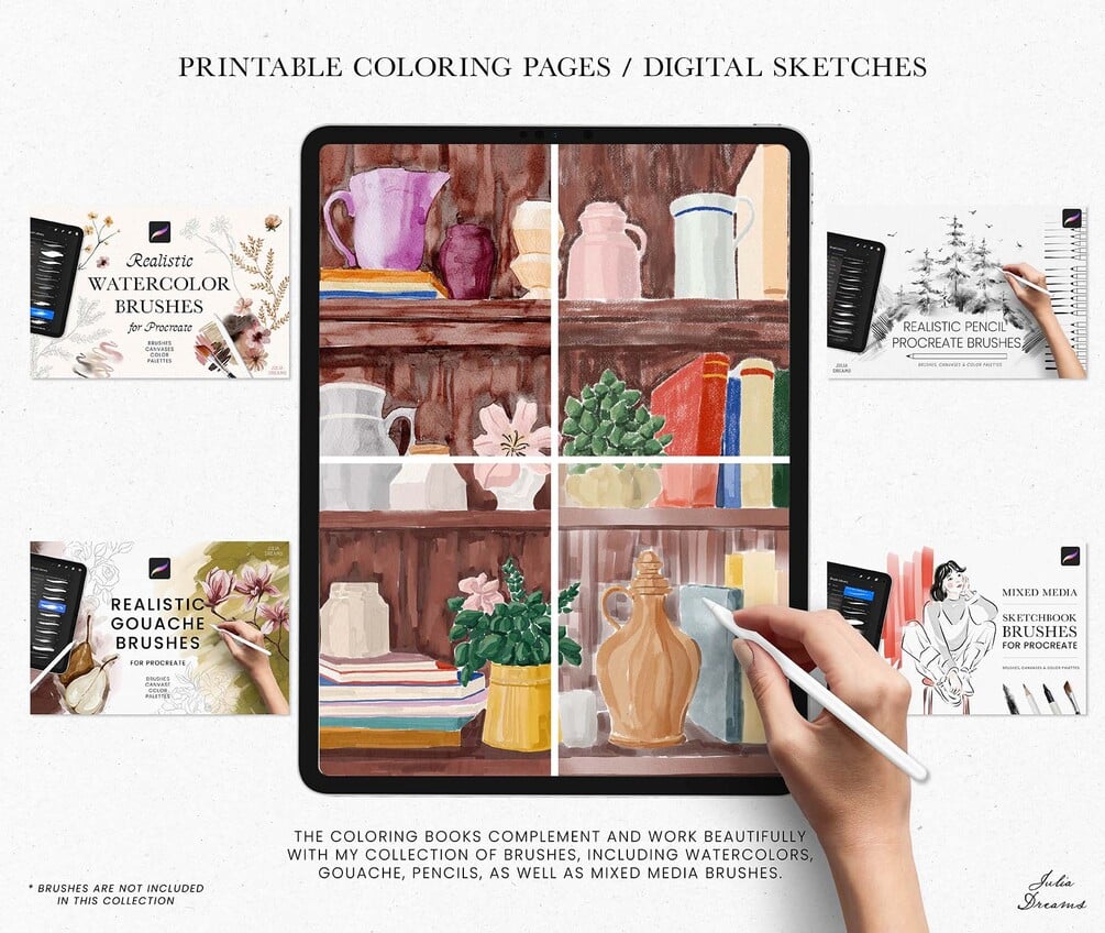 Introducing our exquisite collection of aesthetic coloring pages. Immerse yourself in the mesmerizing world of art and let your creativity flourish as you bring life to these stunning digital sketches. With a wide range of themes including interiors, animals, flowers, and still life, there's something to ignite inspiration in every coloring page.
