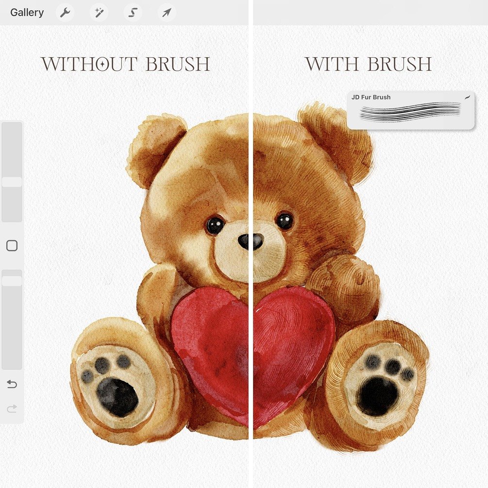 I'm happy to share with you my new brush that can be useful for painting fur, feathers, plush, and adding texture to other surfaces. You can see how I used this brush to paint a bear and how this brush quickly gives a more realistic look to the illustration.