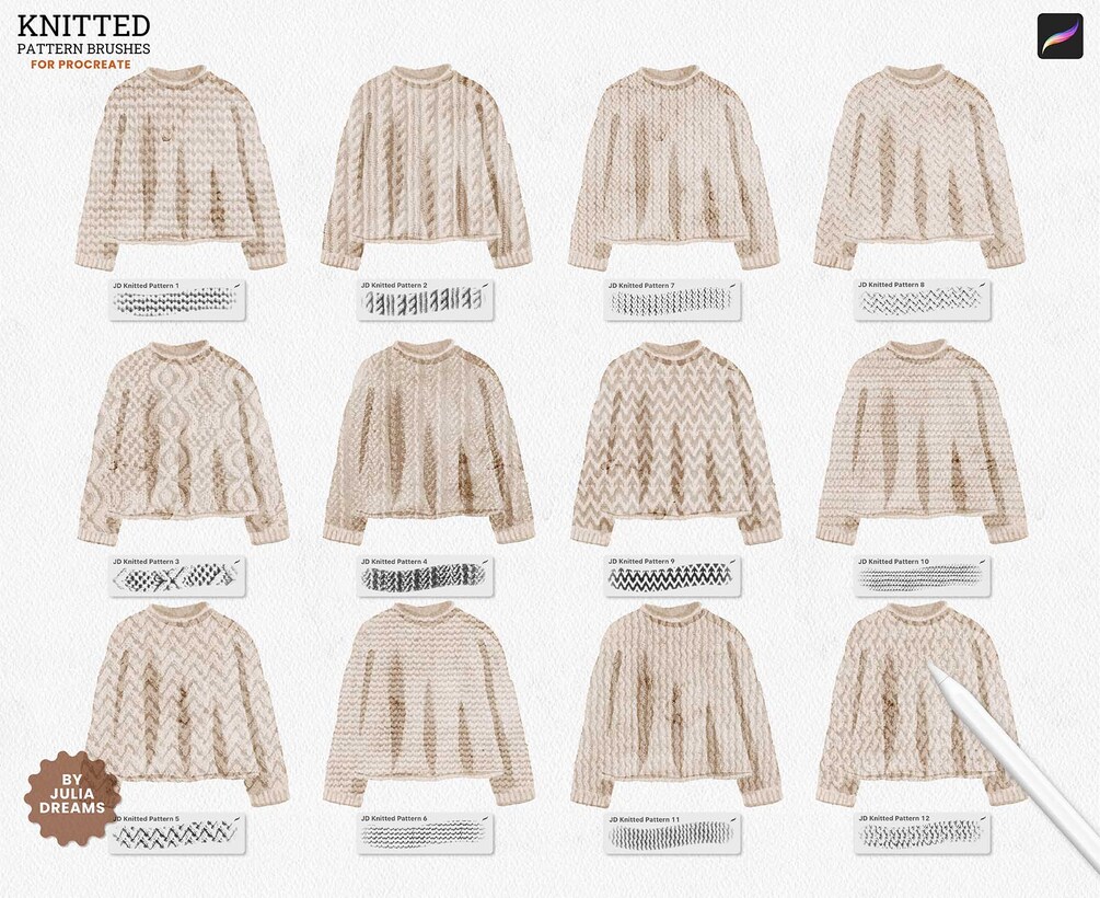 Knitted Pattern Procreate Brushes includes: