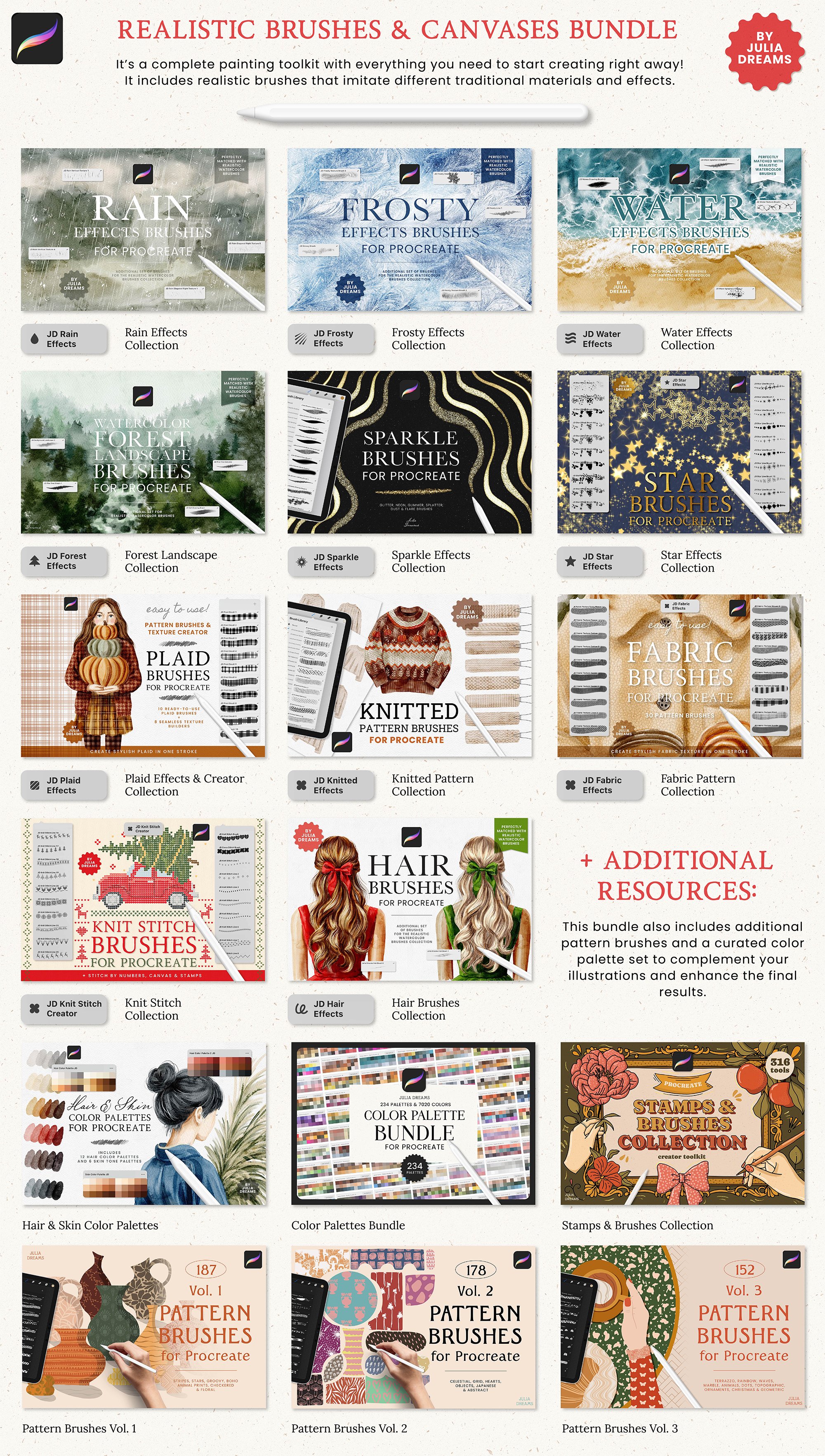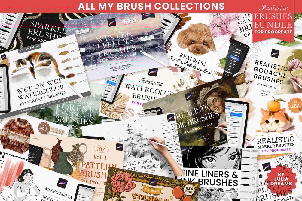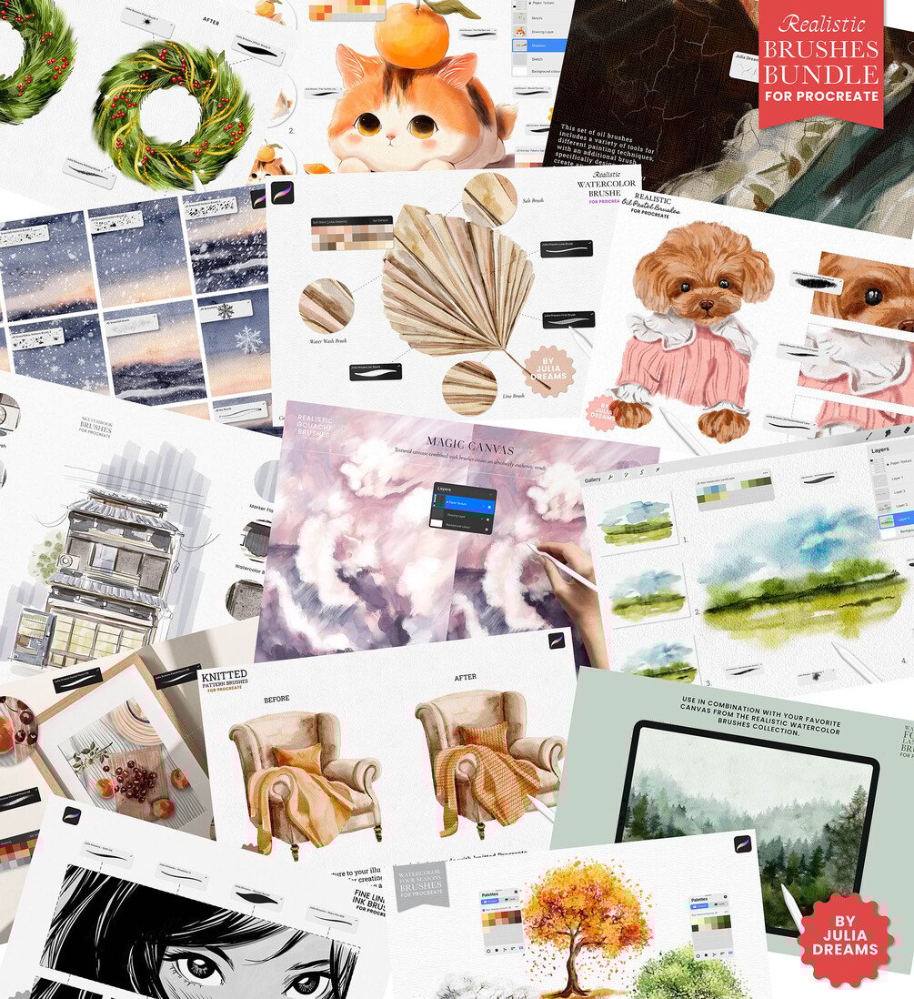 Procreate Brushes & Canvases Bundle: 32 Collections in One Ultimate Pack!