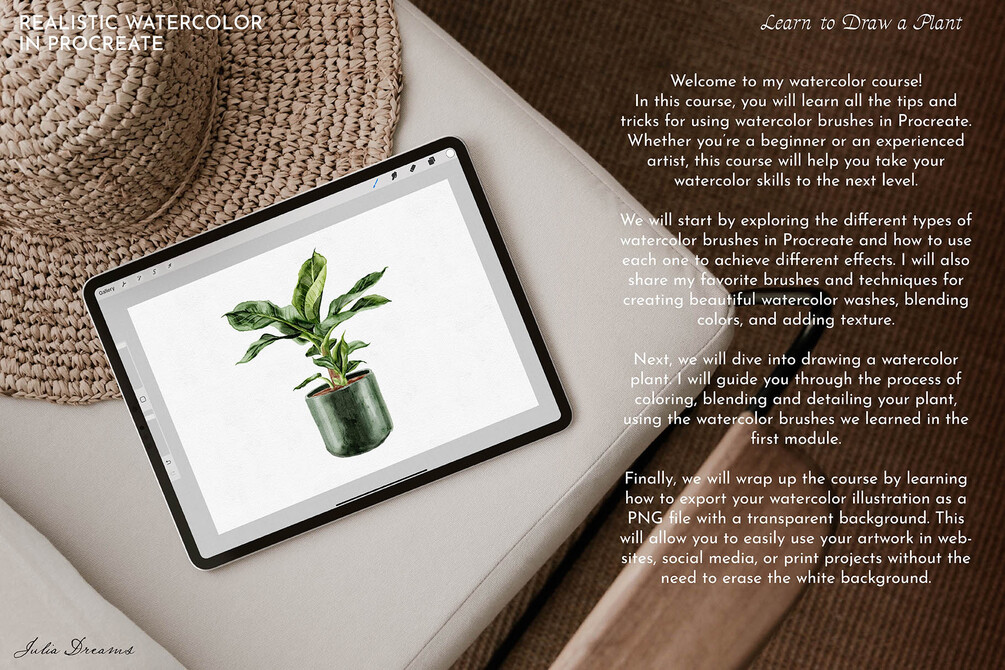 Welcome to my watercolor course! In this course, you will learn all the tips and tricks for using watercolor brushes in Procreate. Whether you’re a beginner or an experienced artist, this course will help you take your watercolor skills to the next level.