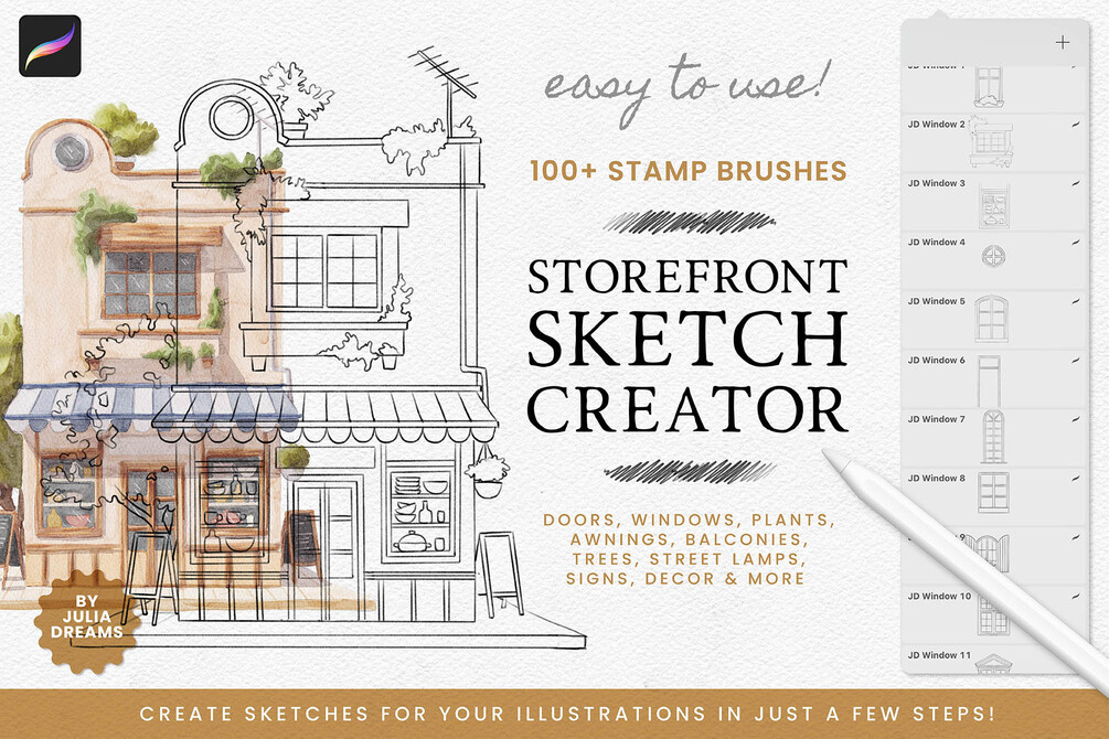 Storefront Sketch Creator for Procreate - Stamp Brushes