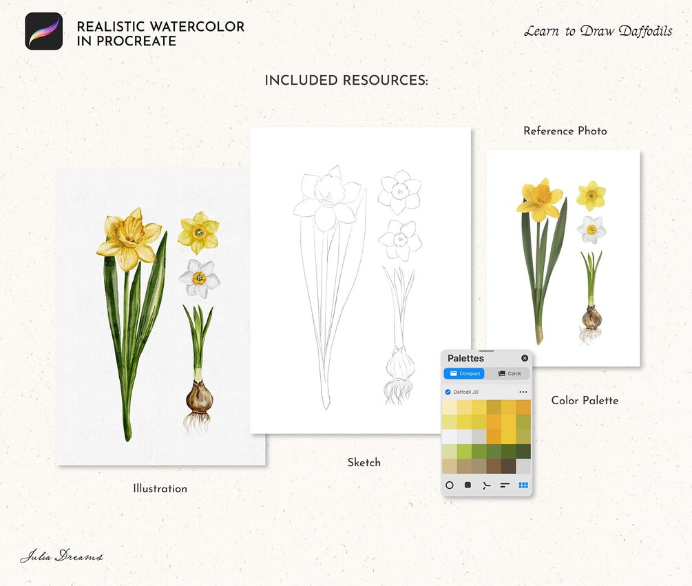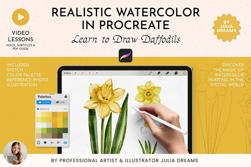 Video Lesson - Realistic Watercolor in Procreate - Daffodils