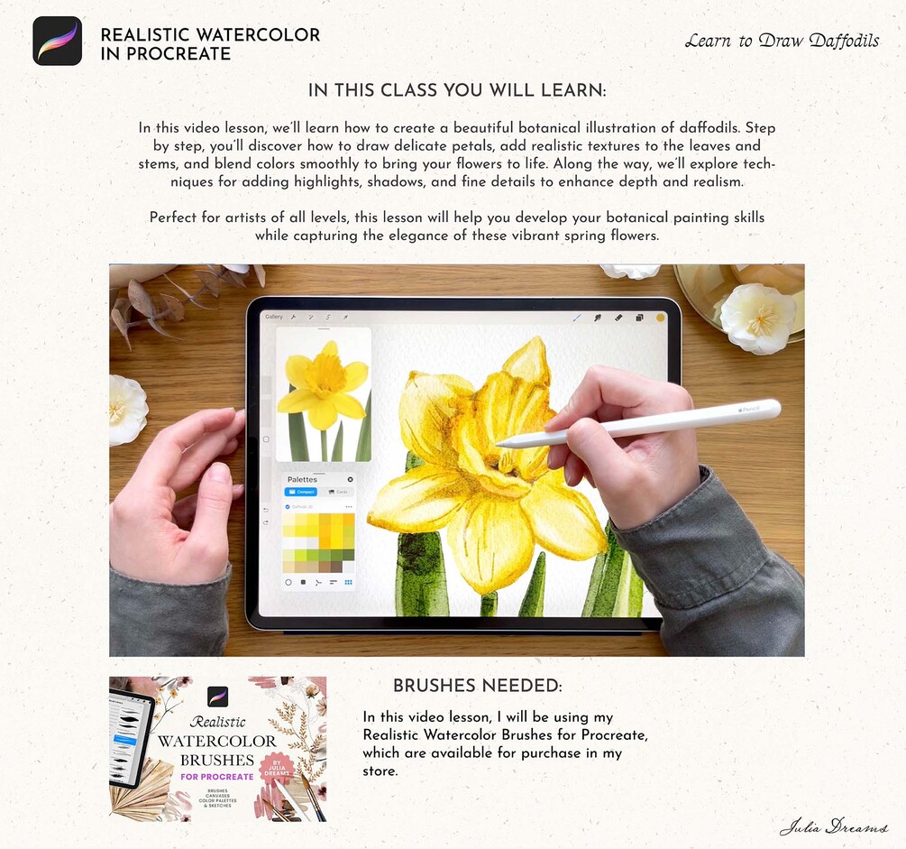 Video Lesson - Realistic Watercolor in Procreate - Daffodils