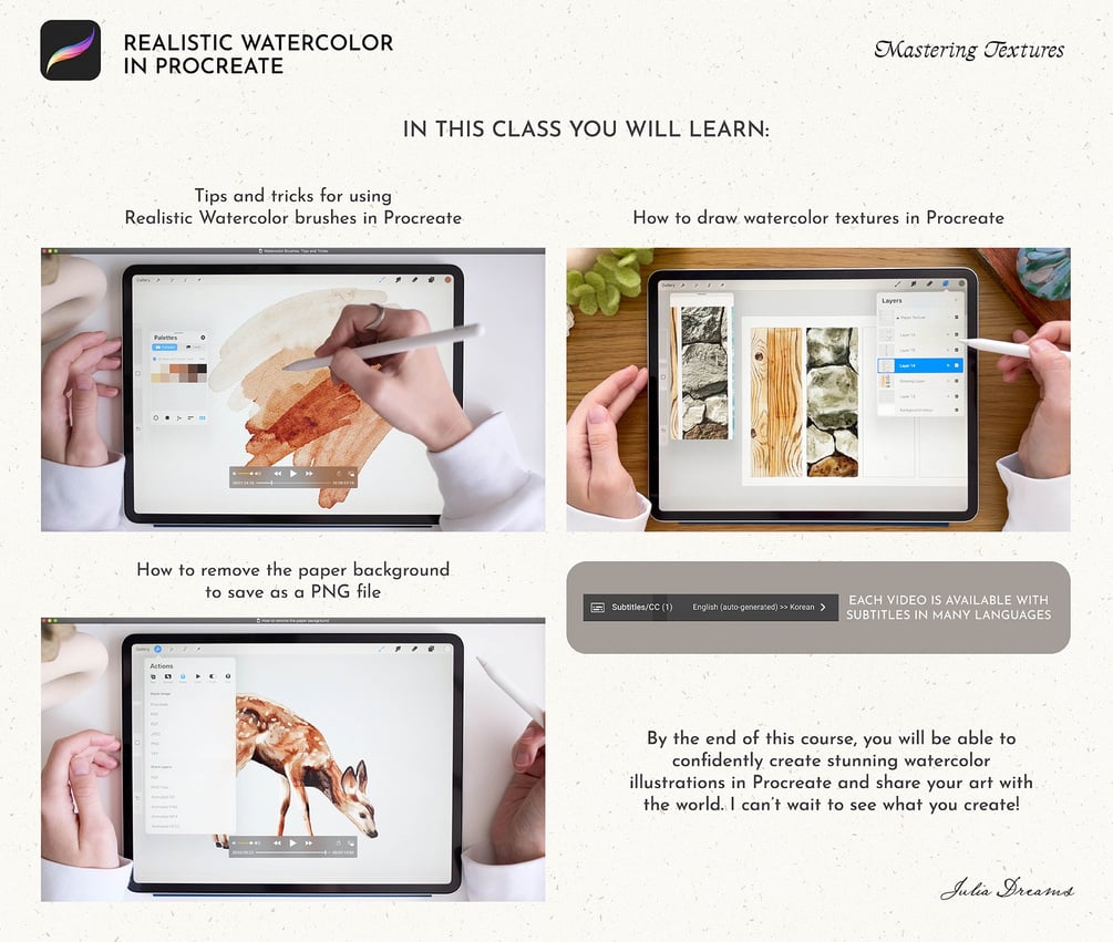 Video Lesson - Realistic Watercolor in Procreate - Mastering Textures