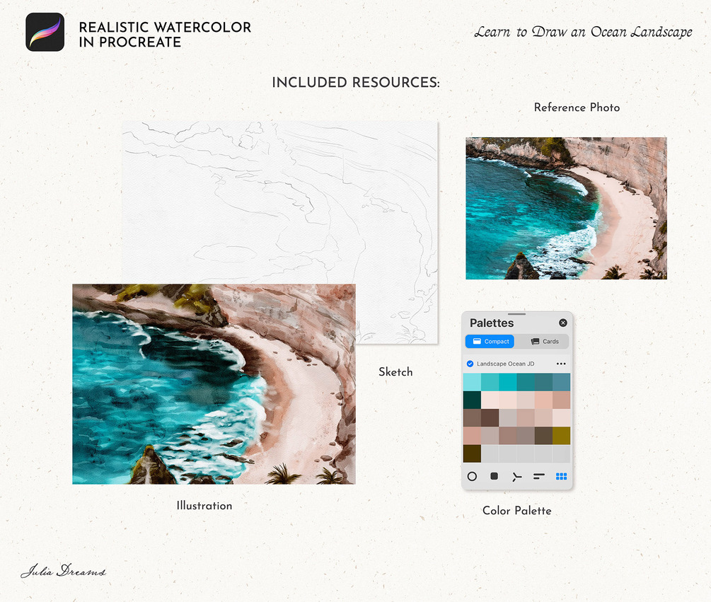 - How to draw Watercolor Ocean Landscape in Procreate;