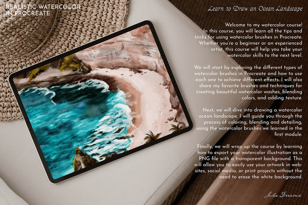 Video Lesson - Realistic Watercolor in Procreate - Ocean Landscape