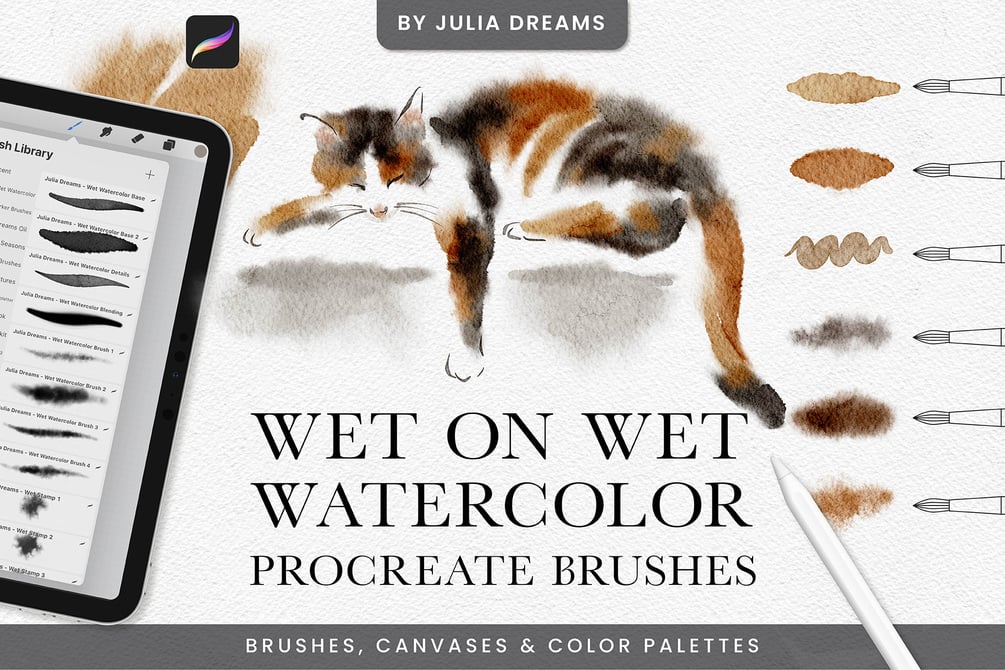 Wet on Wet Watercolor Procreate Brushes - Painting Kit for Procreate iPad Brushes